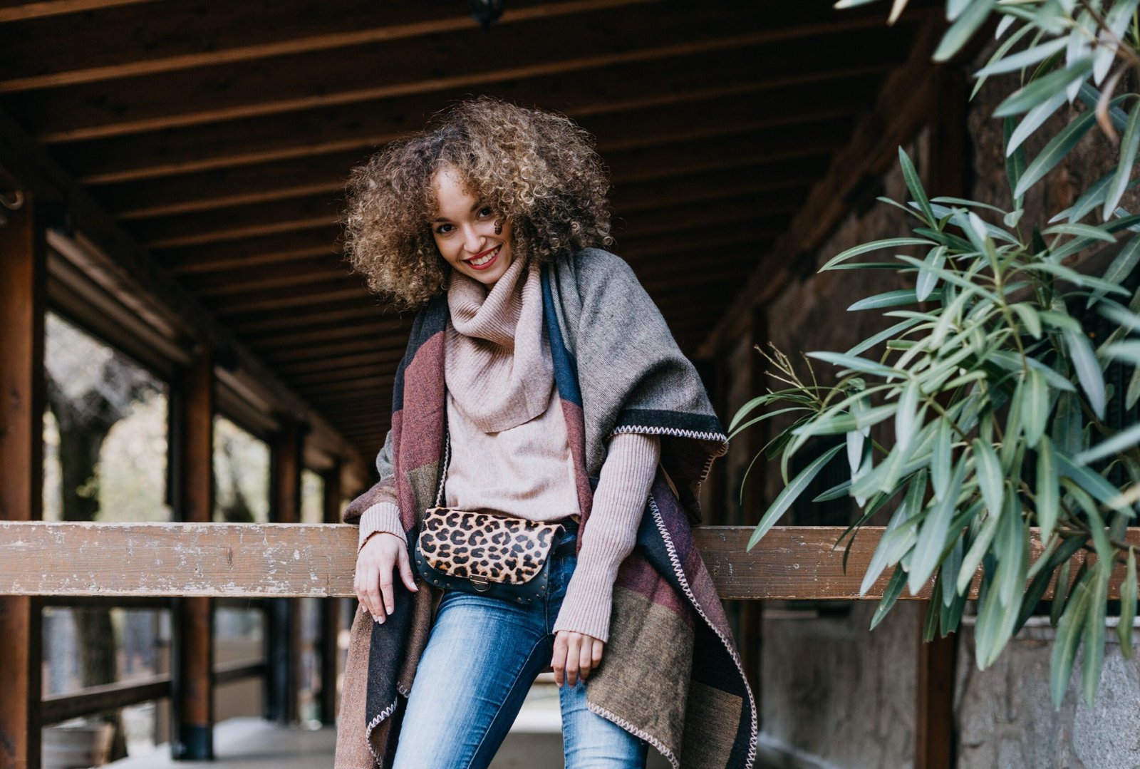 SINGA, original riñonera artesanal de color negro con solapa de pelo print leopardo